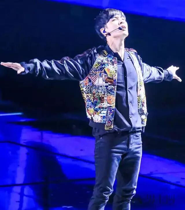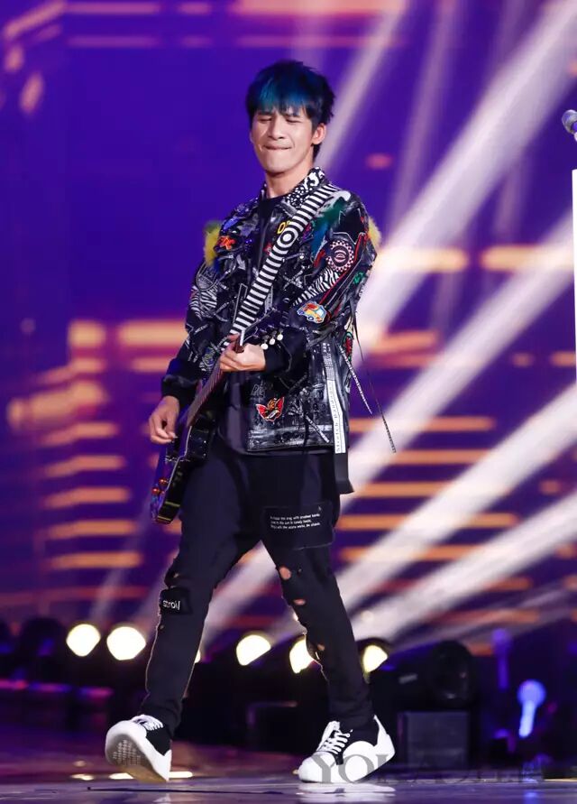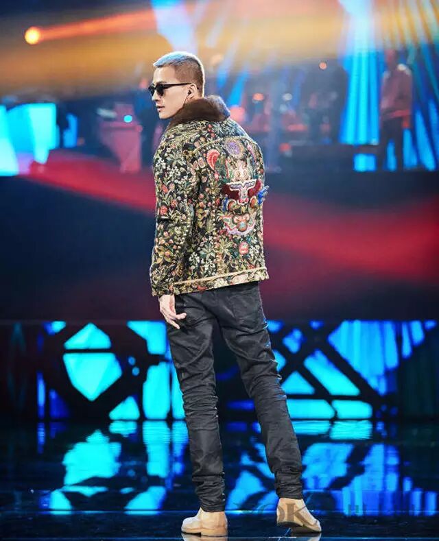 印花拼贴夹克+破洞裤,活力四射!想更张扬,学习大张伟的穿法,但只要选择一件重点单品便可。如果身上每件单品你都想展现自己的个性,就过犹不及,太杂乱无章了。