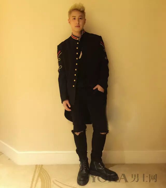 个不高的男生可以参考花花:刺绣短夹克,内搭一身黑,脚踩绑带高帮靴,助长身高,给人修长的感觉,最好能配饰傍身(比如帽子、项链、手链、耳饰),便可凹出更加帅气的造型。