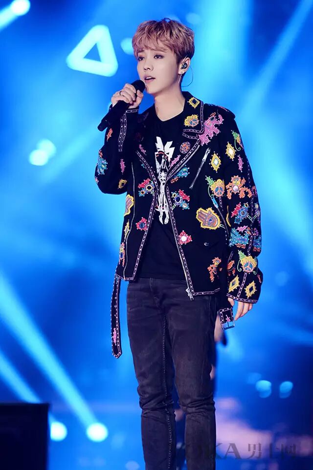 鹿晗穿Moschino2017春夏男装系列,夹克上的图案有趣,颜色丰富,会很酷也很减龄。初次尝试,可以选择图案少些的款式哦。