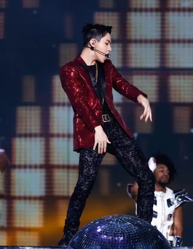 音乐小王子Henry穿一件红色亮片礼服,整个人更性感了,荷尔蒙爆发。红、黑、金色的搭配可以很高富帅,也可以很暴发户,没有气质的要慎选哦!