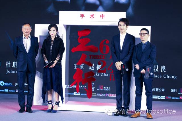 另外,现场公布的先导海报展示了生死一瞬间的医院众生相,整个画面警医匪元素丰富,却又犹如时间定格,尽显神秘。桌椅、医学器材漫天纷飞,枪火纵横爆炸近在眼前,各方剑拔弩张却错落有致的经典站位,流露出杜琪峯专属银河味道,海报中《三人行》“必有一战”的宣传语也紧扣“三人角力”主题,令人备受期待。赵薇透露此海报展现了电影的高潮段落,钟汉良称画面中的他是“为逃出去而不择手段最真实的状态”。杜琪峯则爆料这张海报再现了“每一个人都是慢动作长镜头的状态,整个镜头长达10分钟”。