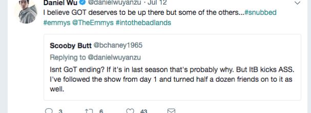 吴彦祖认为自己自制自演的《荒原》,在武术、服装及布景设计方面均有角逐艾美奖的水准,却被明显无视。