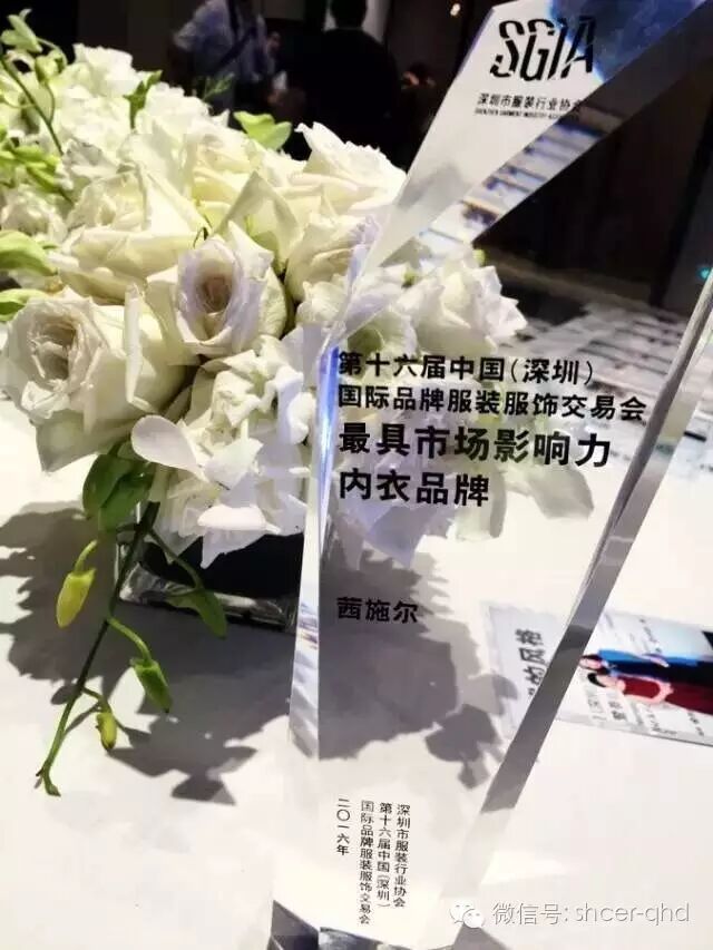 茜施尔在这次国际品牌服交会上,荣获“最具市场影响力内衣品牌”大奖
