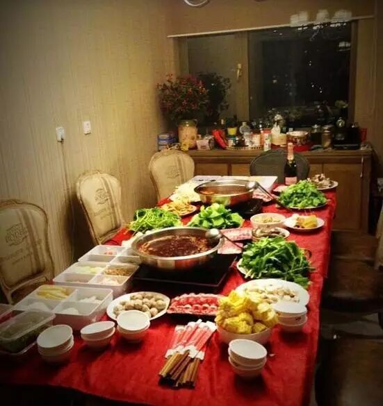 大红色的餐布显得特别的喜庆
