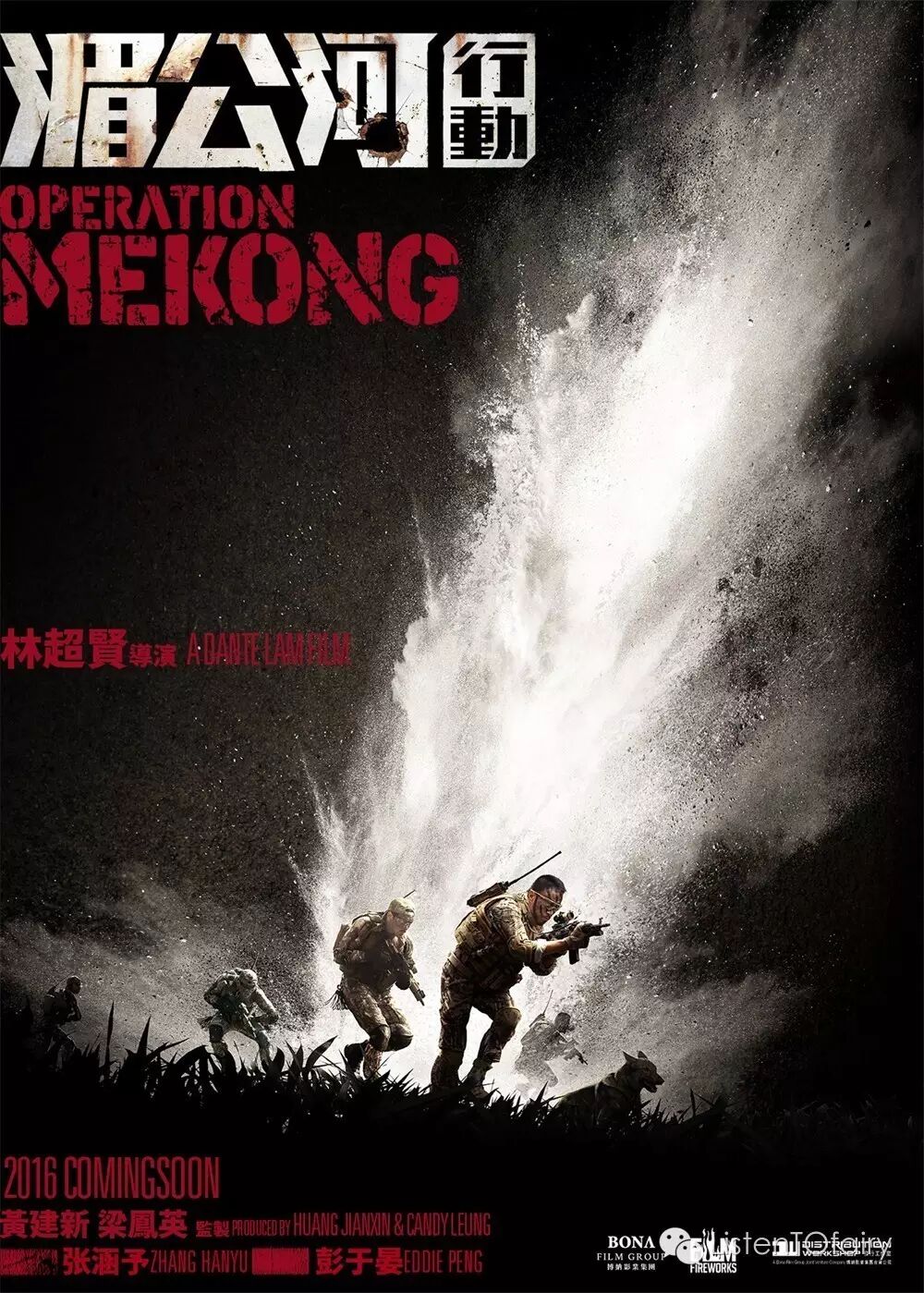 在6.26国际禁毒日到来之际,电影《湄公河行动》片方在北京举办发布会,曝光影片首款预告片。该片根据2011年中国十余名船员湄公河遭残杀案件改编,拍过《魔警》、《激战》、《线人》等片的林超贤执导,张涵予、彭于晏、冯文娟主演,预计十一档上映。