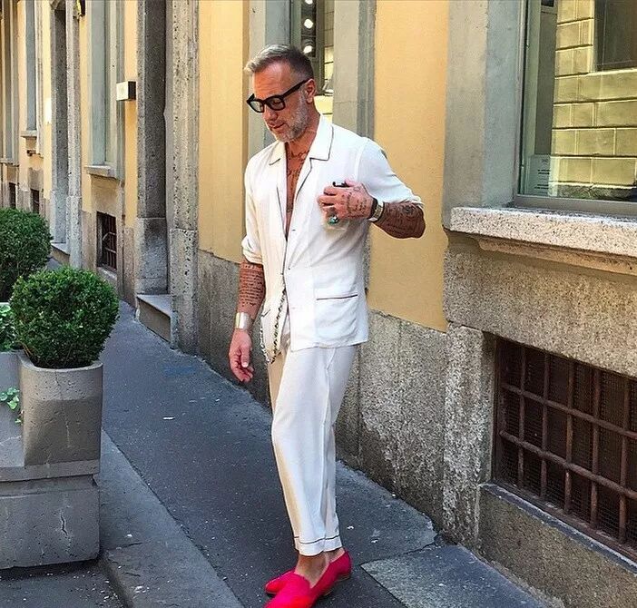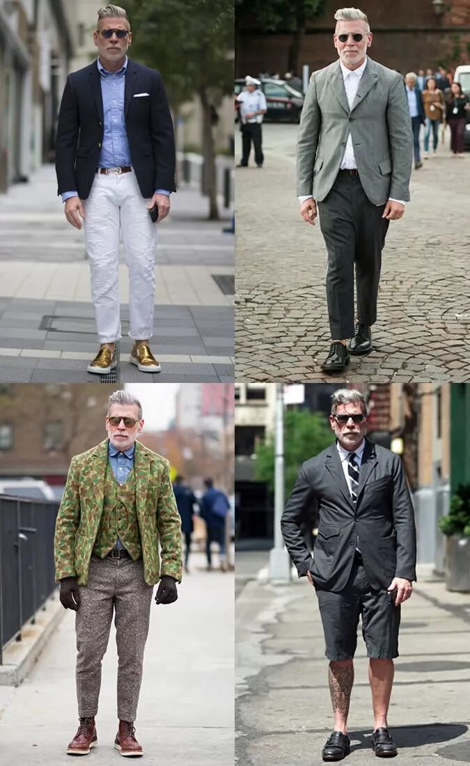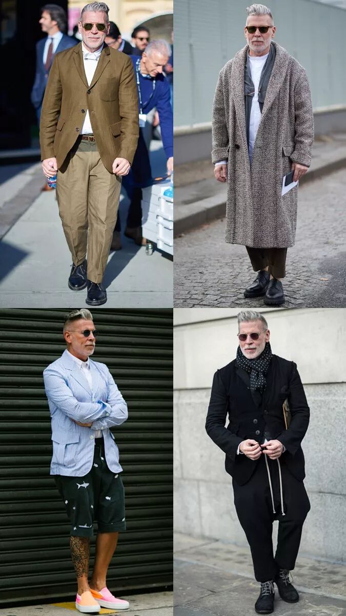 记得街拍中那位大叔Nick Wooster。出身1960年的他被潮流青年们所追捧。Nick Wooster曾供职于Barneys New York, Bergdorf Goodman以及Neiman Marcus这些百货公司作为艺术总监,但真正让他被这个时代所注意到,是时装周场外的私服街拍。