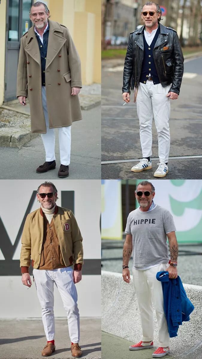生于1965年的Alessandro Squarzi今年52岁了。从2009年他出现在全球第一的街拍摄影师Scott Schuman的镜头中之后,就慢慢被大家熟知。