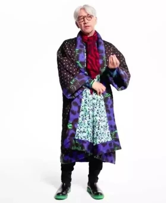 Kenzo For H&M那些花里胡哨的衣服穿在他身上,一点恶俗感都没有,反而有一种奇妙的反差美,不由得让人想起他1982年与忌野清志郎的畅销金曲《い・け・な・いルージュマジック》(《不·可·抗·拒的口红魔法》)那支基情四射的MV。