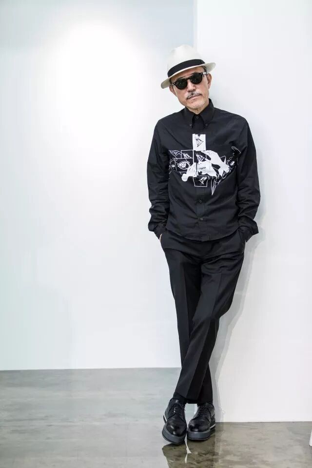 老艺术家的私服,虽然总是黑色高领、深蓝外套、不打领带的西服套装、白色运动鞋……但仔细观察,你会发现他穿衣服很有些偏好。他爱穿Lemaire的黑色衬衫,Maison Margiela的针织与运动鞋,Thom Browne的开衫,黑色的Red Wing875,西装多是玲姐及其门徒的牌子(这件事他应该和好友村上春树也聊得来,毕竟是每年去买两次川久保玲西服的男人)。