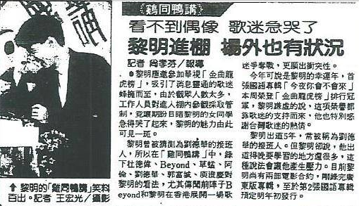 当时的台湾歌迷也没比韩国歌迷冷静多少,黎明来台宣传,人太多看不到偶像,都急哭了。