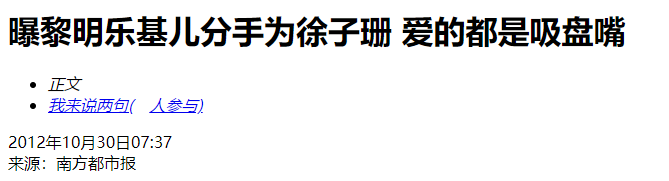 这个新闻最好笑的地方,是到2012年,黎明和乐基儿分手,又传“翻挞”徐子珊,而媒体给的形容是“(黎明)爱的都是吸盘嘴”↓