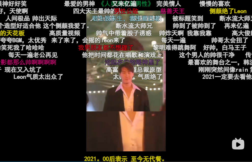 21世纪的饭圈奇迹,就是你在B站随便点开一个黎明的视频,都会有满屏弹幕覆盖,而且好多喊贴贴的还是95后00后~