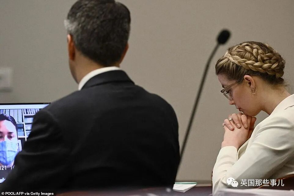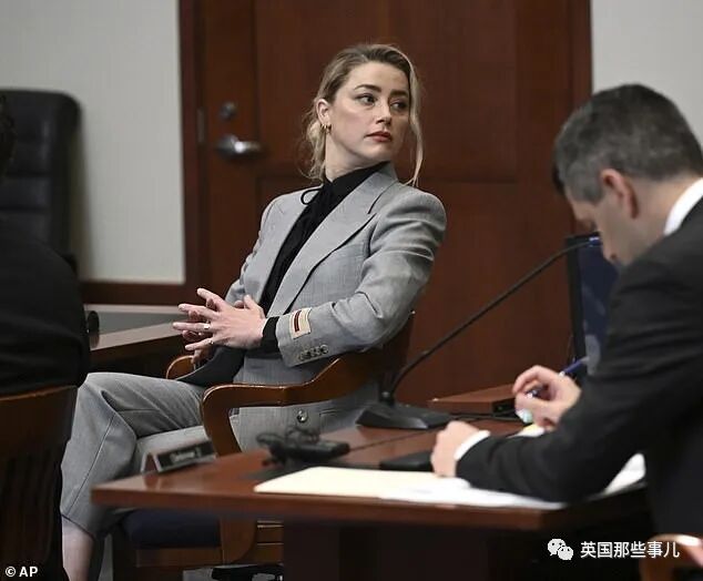 Amber与他相反,通常都不做声色,有什么问题会低声和律师讨论,用纸条记录。