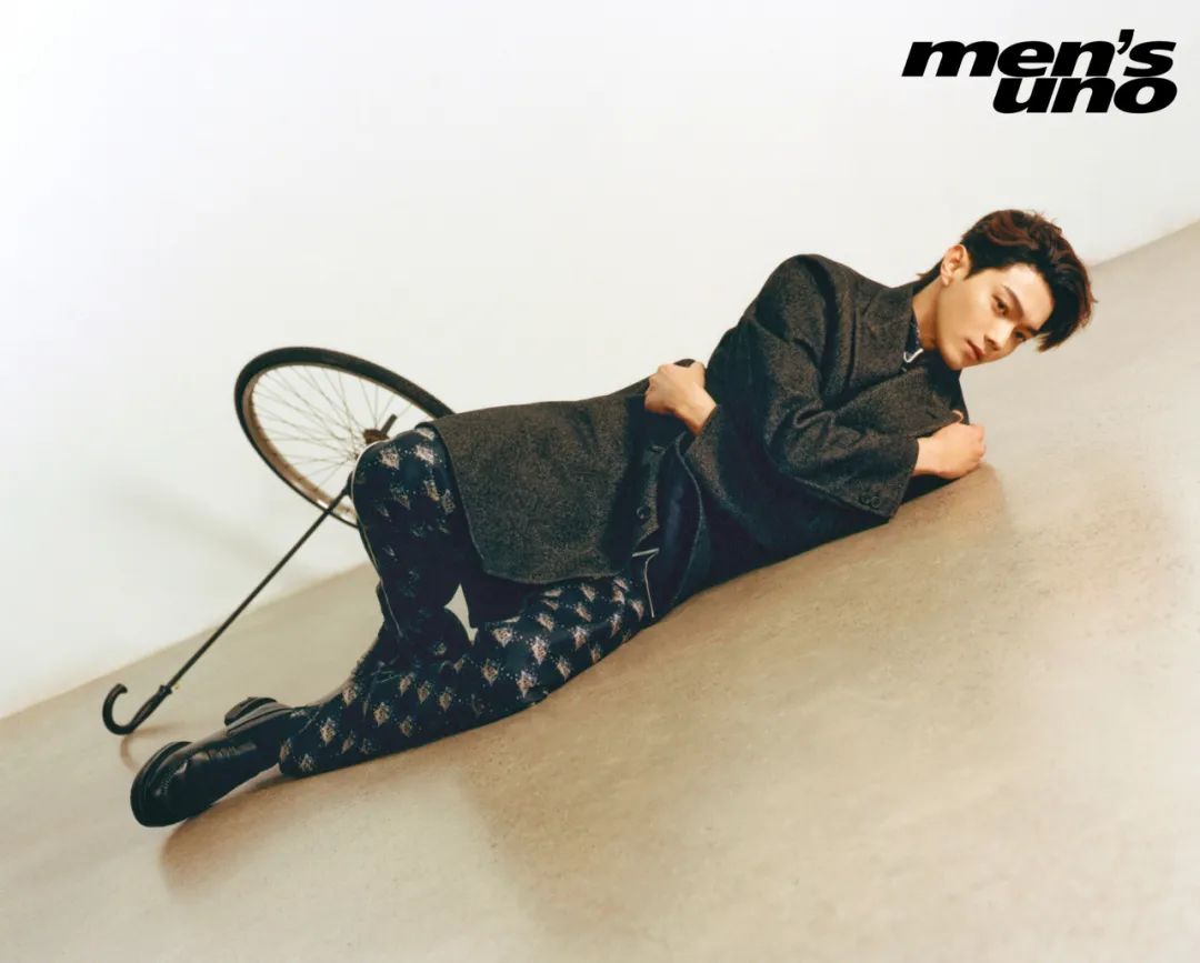 封面拍摄进行到了最后一组造型,许凯华服加身、长身玉立,地毯做成的巨大纸飞机铺设在身后,有极美的黄昏,霞明玉映,风清月白。这是他休假前最后的“On”键状态。一旦结束,就会切换到“Off”:可以把《海边的曼彻斯特》这样的电影看五六七八遍,再搭配十集动画片《倒霉熊》《爆笑虫子》。放纵自己躺在沙发上,零食环绕出一个人形,然后一个鲤鱼打挺跳起来,继续锻炼腹肌。