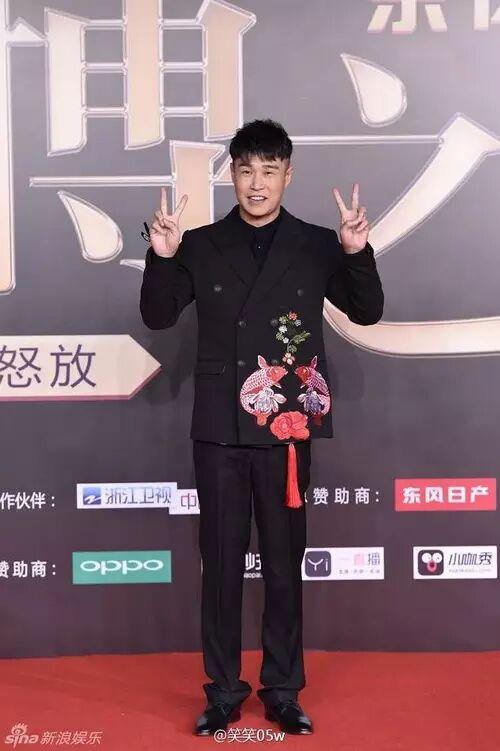 要过年了,张信哲和小沈阳穿得一身喜庆,