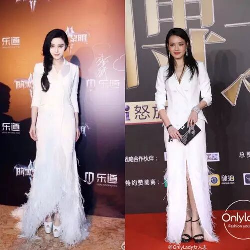 下面这几位,有粉丝说是借不到大牌服装只好以影楼婚纱style亮相的,