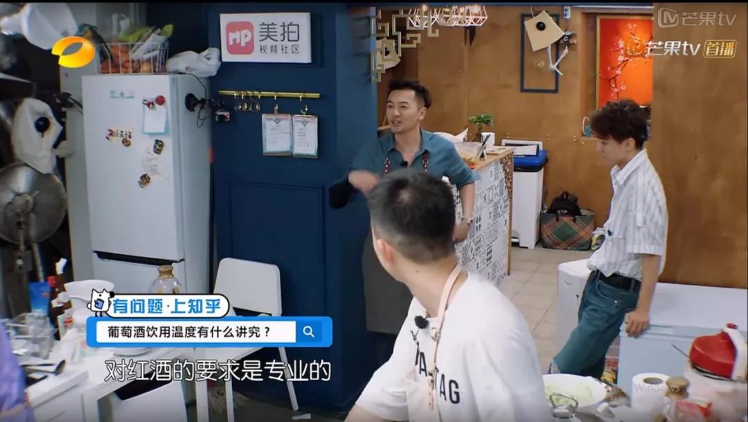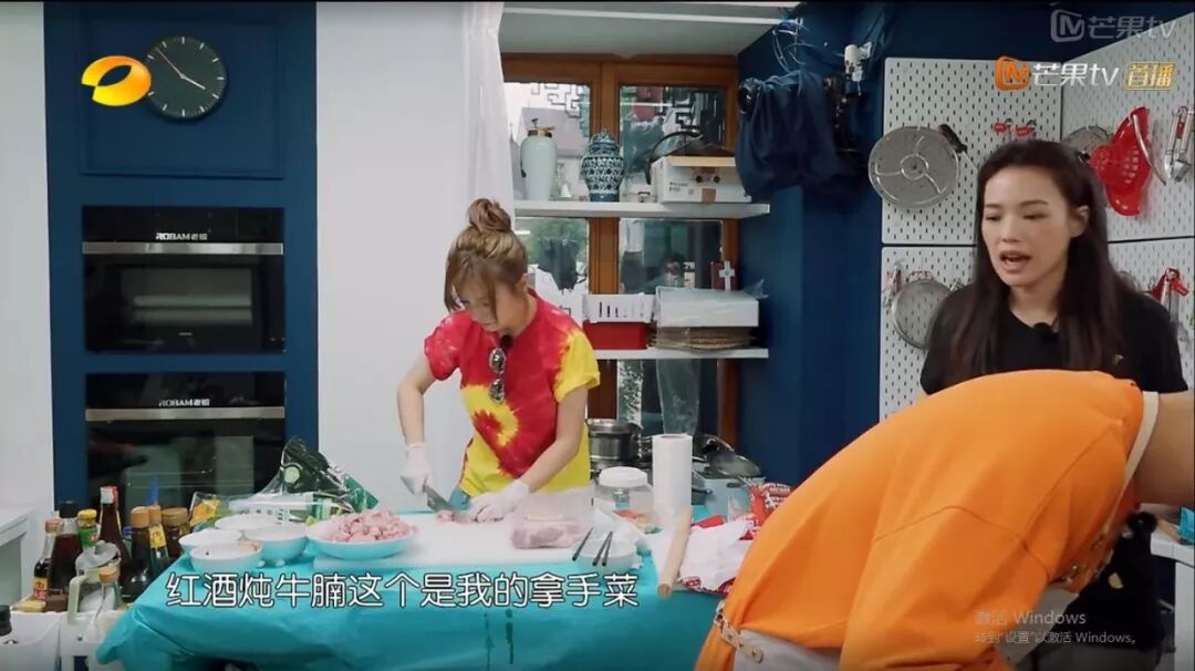 白举纲做红酒焖牛腩遇到一些小问题,舒淇说其实这个菜她很拿手,赵薇就说那你可以给白举纲一些建议,舒淇摇摇头说,不了,他不会听的,他有自己的方法。