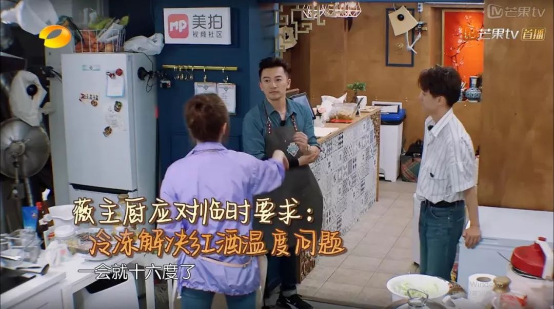 法国人对喝红酒是很讲究的,当收到客人意见,反馈说红酒温度一定要在16度才最好喝,赵薇立马就让其他人再换一瓶放冰箱里,说这样很快就16度了。
