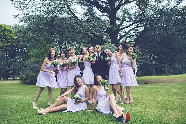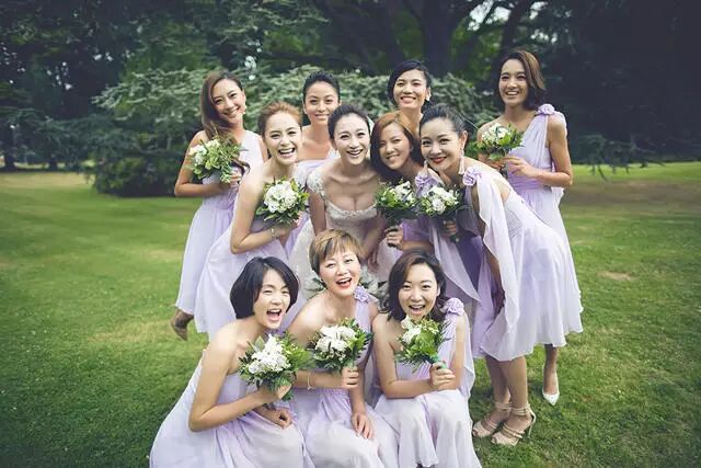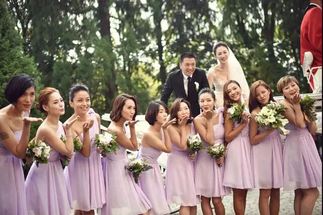 ▲李小冉夫妇与伴娘团