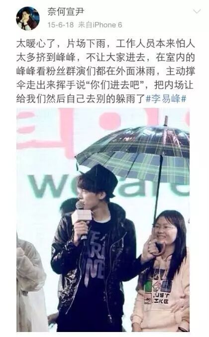 为粉丝撑雨伞,撑起一片温暖的天空。