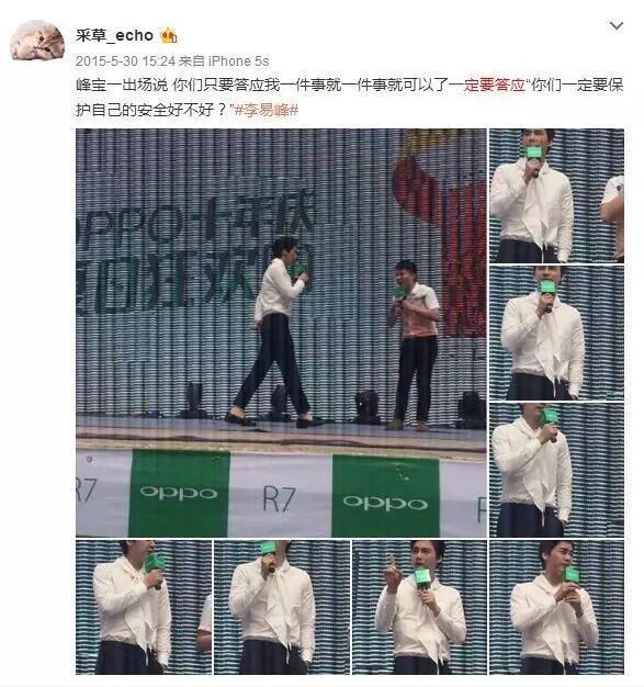 李易峰与大众印象中的”鲜肉“有些不同,他与人为善、为人谦逊、处事稳重。身上没有太多的明星光环,就像一个贴心的朋友,关心每一个支持他的蜜蜂。