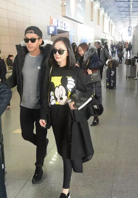 2015年12月19日,小两口首次在公众场合合体,双双现身上海机场。当天,杨幂身着米奇图案的黑衫亮相,和一旁护送的老公刘恺威有说有笑,甜蜜之情溢于言表,也让婚变传闻不攻自破。
