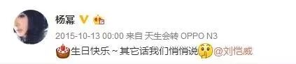 2014年1月8日,杨幂与刘恺威在巴厘岛举办婚礼,婚后二人经常在微博高调秀恩爱。而近两年,二人微博互动的频率明显减少,杨幂的最近一次微博互动,还停留在去年刘恺威生日当天。