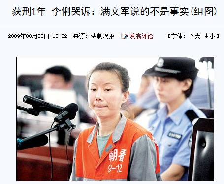 法官当庭宣判:李俐因容留他人吸毒罪被判处有期徒刑1年,并处罚金2000元。我们看看,在同样容留他人吸毒的案例中,房祖名的刑期是六个月,并处罚金人民币二千元。不知道是不是满文军的证词对量刑起的作用。但可以想象,任何一个妻子,在听到丈夫那样的证词时,都会崩溃。在事后的采访中,李俐希望媒体将她的名字报出来,不要再用“某人的妻子”来称呼她。