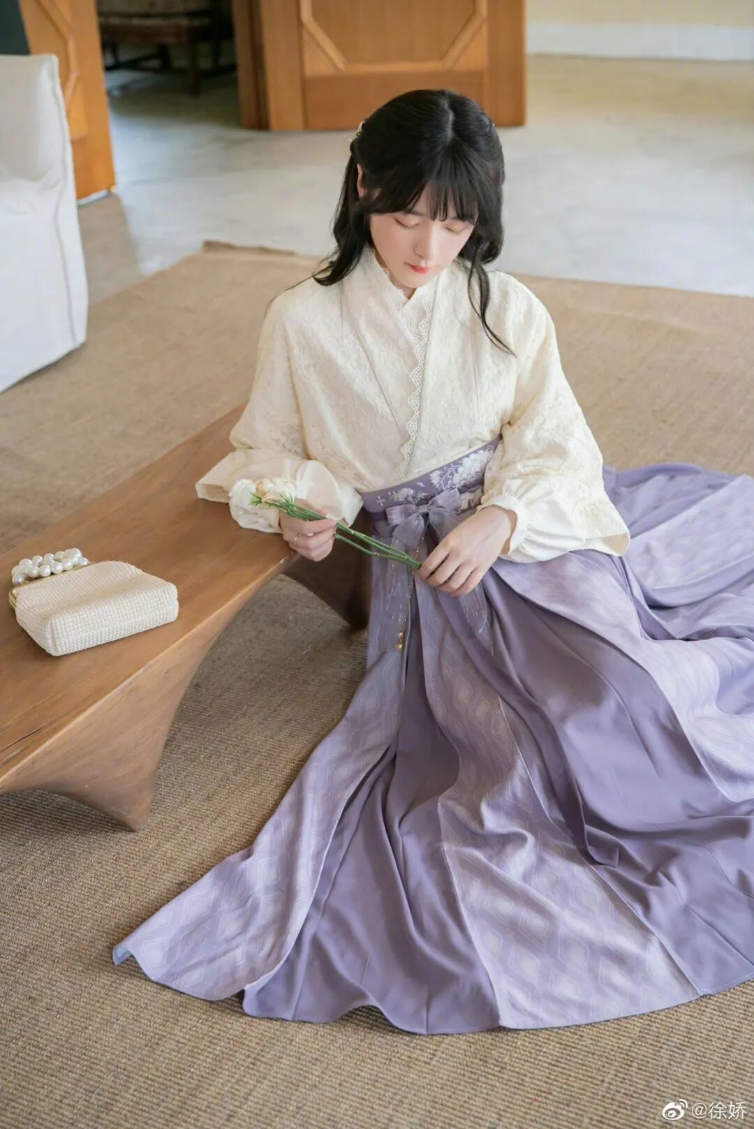 不仅是毕业典礼上的百迭裙,徐娇也用粉发搭配过马面裙。