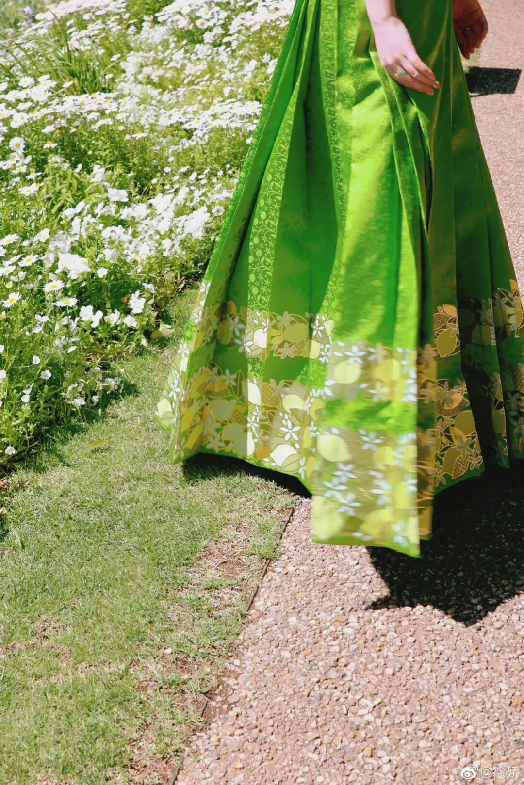 当时正赶上迪奥抄袭马面裙事件,几乎没有公众人物发声。徐娇也没有在社交网络上评论这件事,但是她穿了一条真真正正的马面裙站到了金鸡奖的红毯上。
