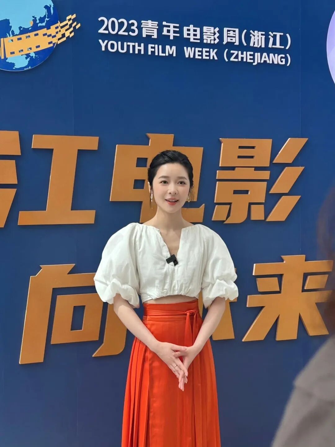 而且你看,现在她回到中国,以青年电影人的身份参加2023青年电影周,是比较正式且严肃的场合,所以就把头发染回了黑色。