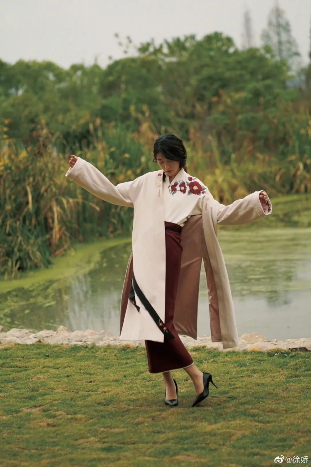 如果稍微对徐娇有点印象,就知道她穿汉服并不是蹭这几年的国风热度,而是真正的热爱,从十年前就开始穿,还有自己的汉服店铺。