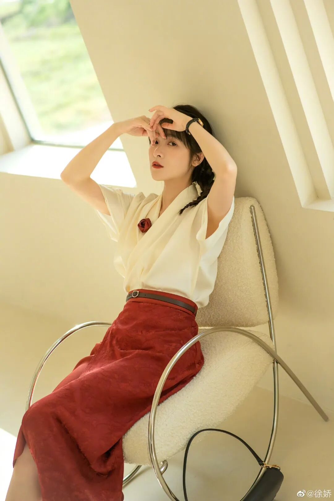 我还想特别提一句,徐娇喜欢穿汉服,喜欢传统设计,也喜欢又酷又辣的性感穿搭,她的审美是丰富多元的。