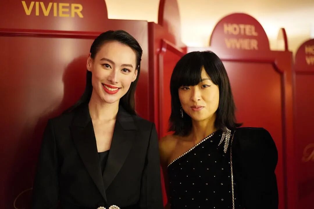 长相英气的梁洛施,还蛮适合穿西装的,在RV“女士之夜”上,用大光明发型搭配黑色Victoria Beckham套装攻气十足,身边bling bling的那位是天王嫂徐濠萦。