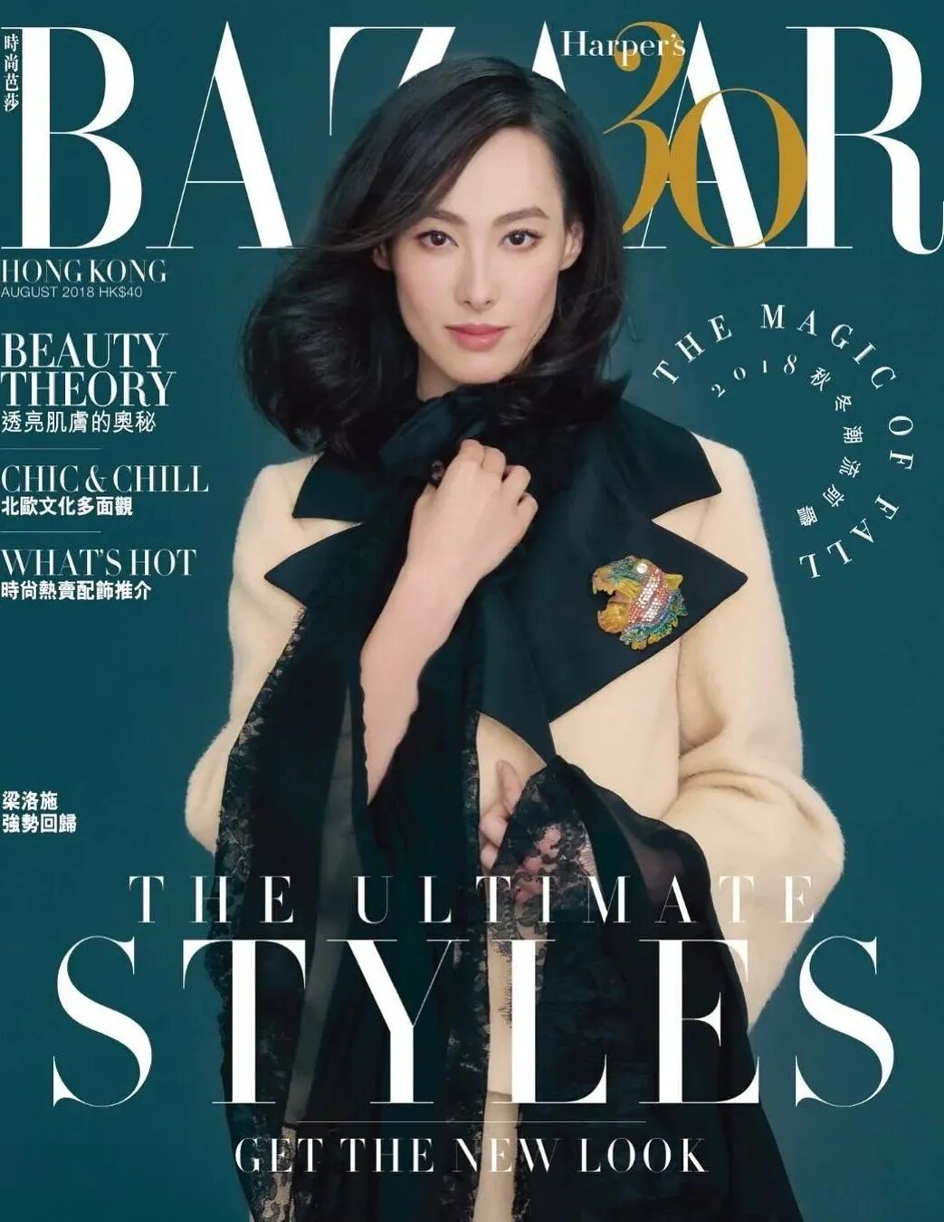 除了帮品牌代言和站台,大刊封面也没少上,时尚资源相当不错。2018年是她的复出元年,可谓动作频频,先是身穿Gucci最新款登封港版《时尚芭莎》,内页的红丝绒礼服裙look也很惊艳。美是美的,就是脸颊感觉瘦得有点凹陷,眼神也略显空洞和疲惫。