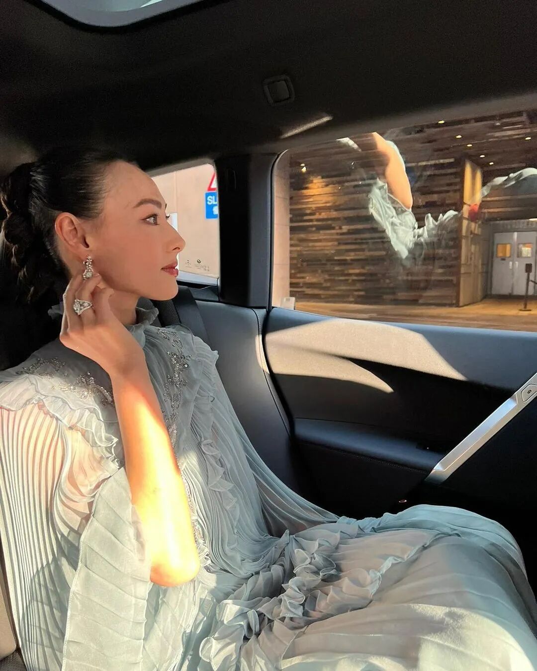 复出第一站就选择了贵妇护肤品牌cpb,和她贵妇的身份倒是蛮契合(“编外”贵妇也是贵妇)。梁洛施身穿Maxmara白色套装,佩戴Tiffany耳环,整体很有港女的飒爽感。合作的经纪人Kim,是认识多年的好友,捧红过Angelababy,圈内还蛮有名~