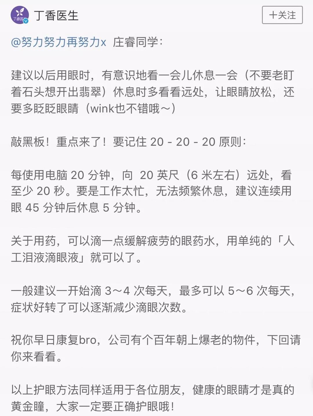 虽说“熬夜煲剧一时爽,一直熬夜一直爽”,但是如果继续这样熬夜追电视剧的话,不但最贵的眼霜帮不了你,还会给眼睛带来伤害呢,所以要好好爱护眼睛啊。就算不听我的,也要听听丁香医生的哦。好了就酱,我继续追黄金瞳去咯~