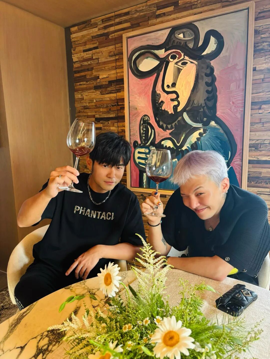 而且,照片中两人喝红酒聊艺术的餐桌上,还摆着权志龙最爱的雏菊假花,周董他是真懂啊。