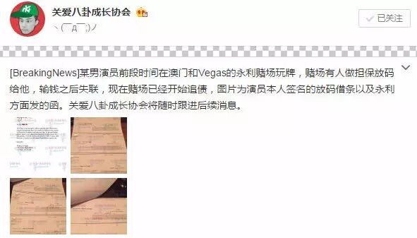 俗话说“三十年河东,三十年河西”,娱乐圈有时候就是这么现实。曾经一夜爆红的人,也可能瞬间就成为了网友群嘲的对象。今天有人曝出,某男星被赌场追债,人却失联。而这位男星“Zhou Jie”的音译疑似是周杰,网上还贴出了多张疑似由周杰本人签署的字据,笔迹对比也很相似,虽然目前无法求证周杰是否真的欠债,但……他好赌的事情,也是不争的事实。