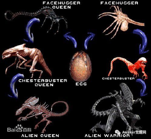 从昆虫学(蚂蚁、白蚁等)推断,一个不成熟的女性,是第一个从宿主中出来的女性,成长为一个新的女王,而男性则变成了雄性或战士。随后的雌性幼虫仍处于休眠状态或被雄性杀死…或者从生物化学的角度来说,一个异形女王存在并改变为男性来限制浪费。异形女王找到了一个筑巢点(大气站的热量使交换者温度达到了完美的状态),并且变得久坐不动。然后,当她的腹部膨胀成一个膨胀的卵囊时,她就会被雄性所照顾。雄性和战士还会分泌一种树脂建筑材料来排列结构,在食物供应和/或为其生产的宿主耗尽时,它们可能处于休眠状态。(当所有的殖民地居民都被用完的时候)。在这种情况下,军队发现了他们,但当新宿主出现时,他们很快就会出现。