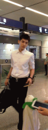 图片中的人是吴亦凡,他在长沙机场提着一只绿白相间的玩偶。这是他以美貌在国内出圈的第一张图。