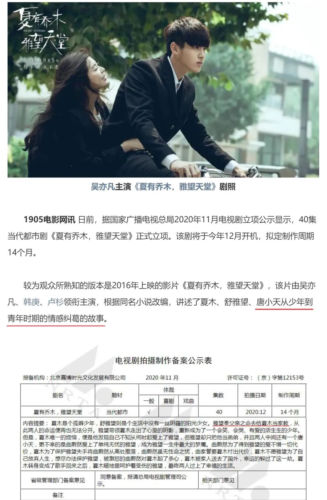 吴亦凡得到的电影角色基本都是高富帅,一个典型的例子是《夏有乔木雅望天堂》,这部戏女主角名不见经传,男主角说不好是韩庚还是吴亦凡,韩的角色是女主恋人,吴的角色是暗恋女主并为之复仇的人。
