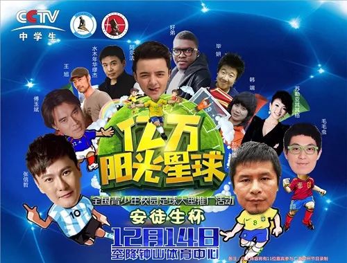 《亿万阳光星球》安徒生杯是由全国青少年校园足球工作领导小组办公室、中央电视台中学生频道及钟山县委、县政府主办的全国青少年校园足球大型公益推广活动,让具有强大社会影响的歌星、影星、笑星、体育明星,化身足球“推广大使”,去青少年中普及体育精神。将于今年12月12日至15日在钟山县录制,14日晚在钟山体育中心举行大型推广活动。