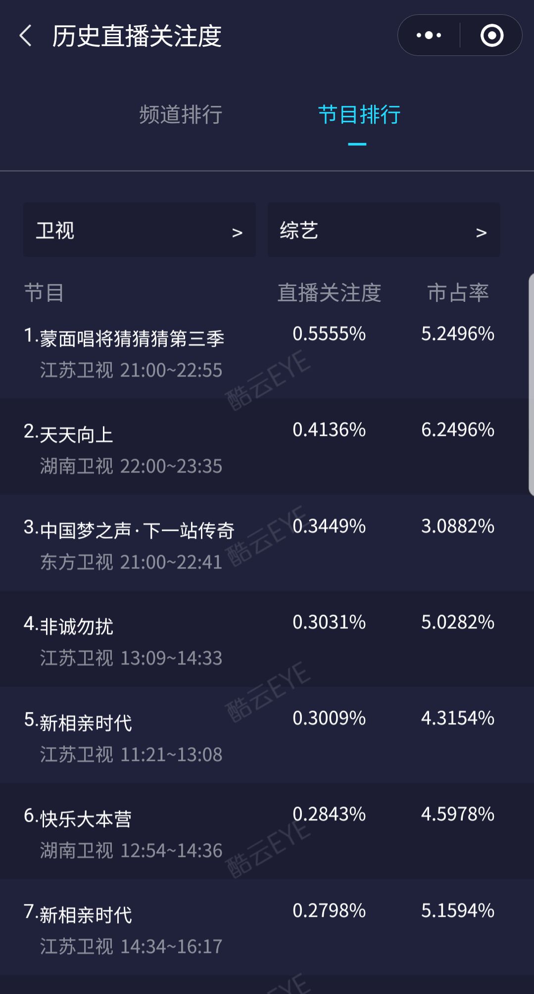 音乐综艺向来是各大卫视用来抢占周末收视的利器,酷云数据显示音乐类综艺直播关注度成绩亮眼。音乐类综艺之所以受到观众的喜爱,是因为音乐本身表达的情感是可以被大众感知的,并且引发共鸣,这也是音乐综艺多年以来逐渐兴起的原因。