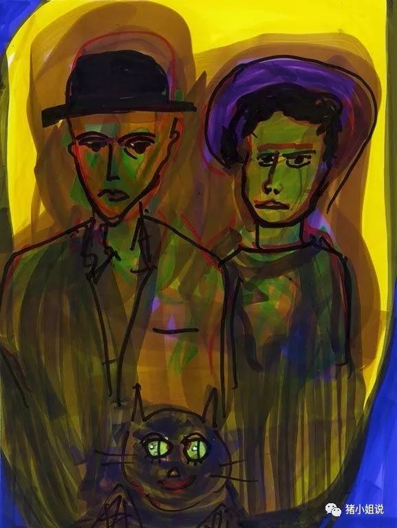 这是他的人物画,显然,梵高和毕加索对他影响最大。第一幅画的主题是“霍普金斯一家”,第二幅的主题是“安东尼和克里奥佩特拉”。