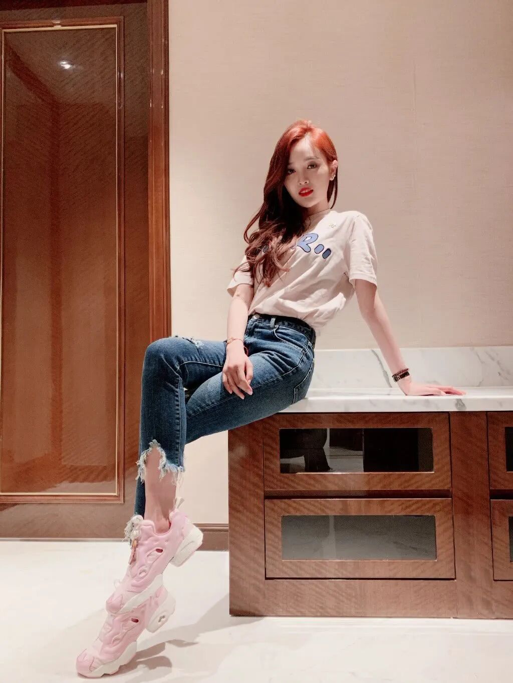 看到这张照片,你会发现,光看到吴宣仪的腿了,真是长呀!简单的休闲T恤与牛仔裤的搭配,就凹出大长腿既视感,不知羡慕死多少粉丝啦!