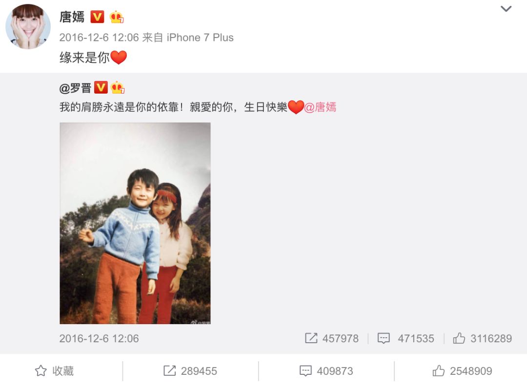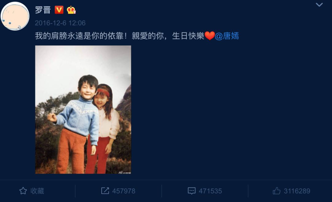罗晋在微博上晒出了唐嫣的照片,配文是:“我的肩膀永远是你的依靠,亲爱的你,生日快乐。”