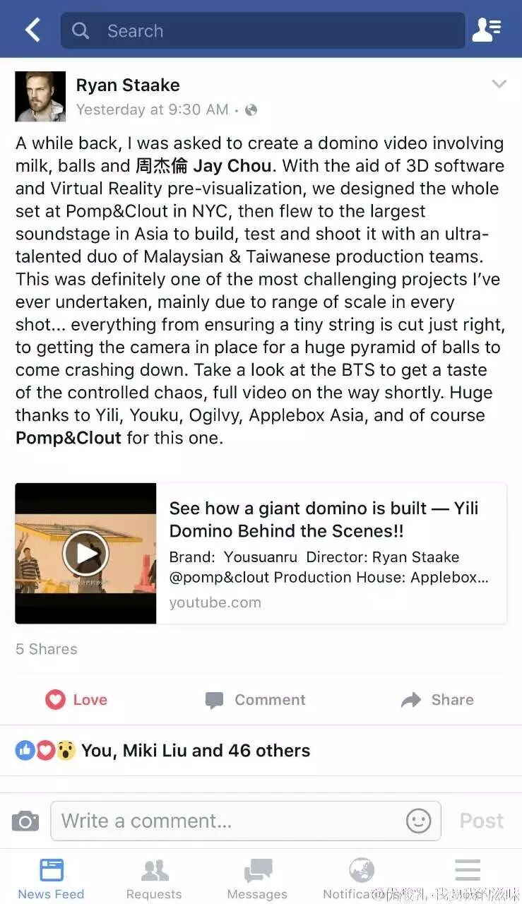 周杰伦的这则广告,也冲出国门,火热引爆Facebook,一经上线就吸引超过220万人次观看。