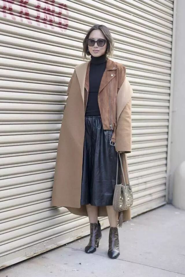 内搭还可以有夹克+半裙or连衣裙,都是我们可以借鉴的组合。