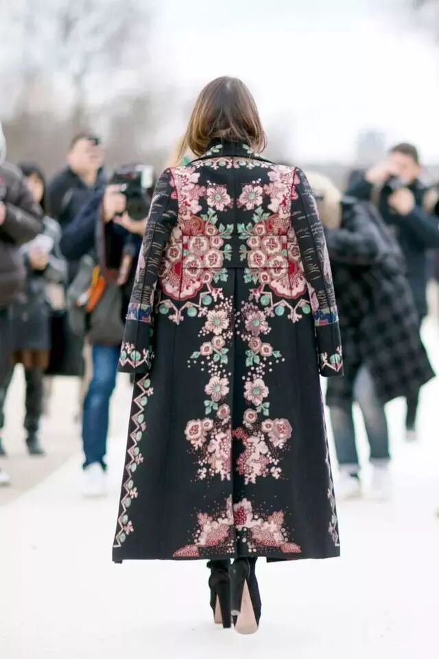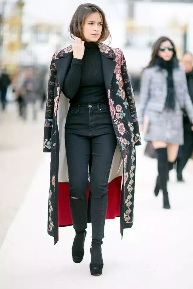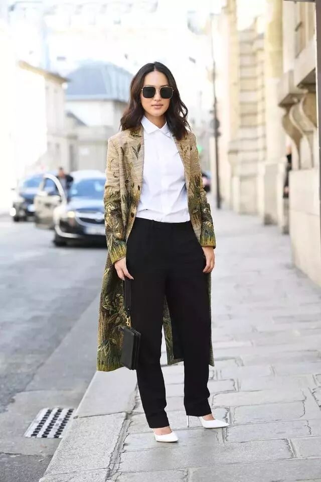 一般小个子女生会怯于驾驭这种比自己身高还长的大衣……作为本身已经很有细节感的大衣来说,Miroslava Duma选择内搭紧身的全黑造型来平衡,一条高腰铅笔裤将视线上移10公分。